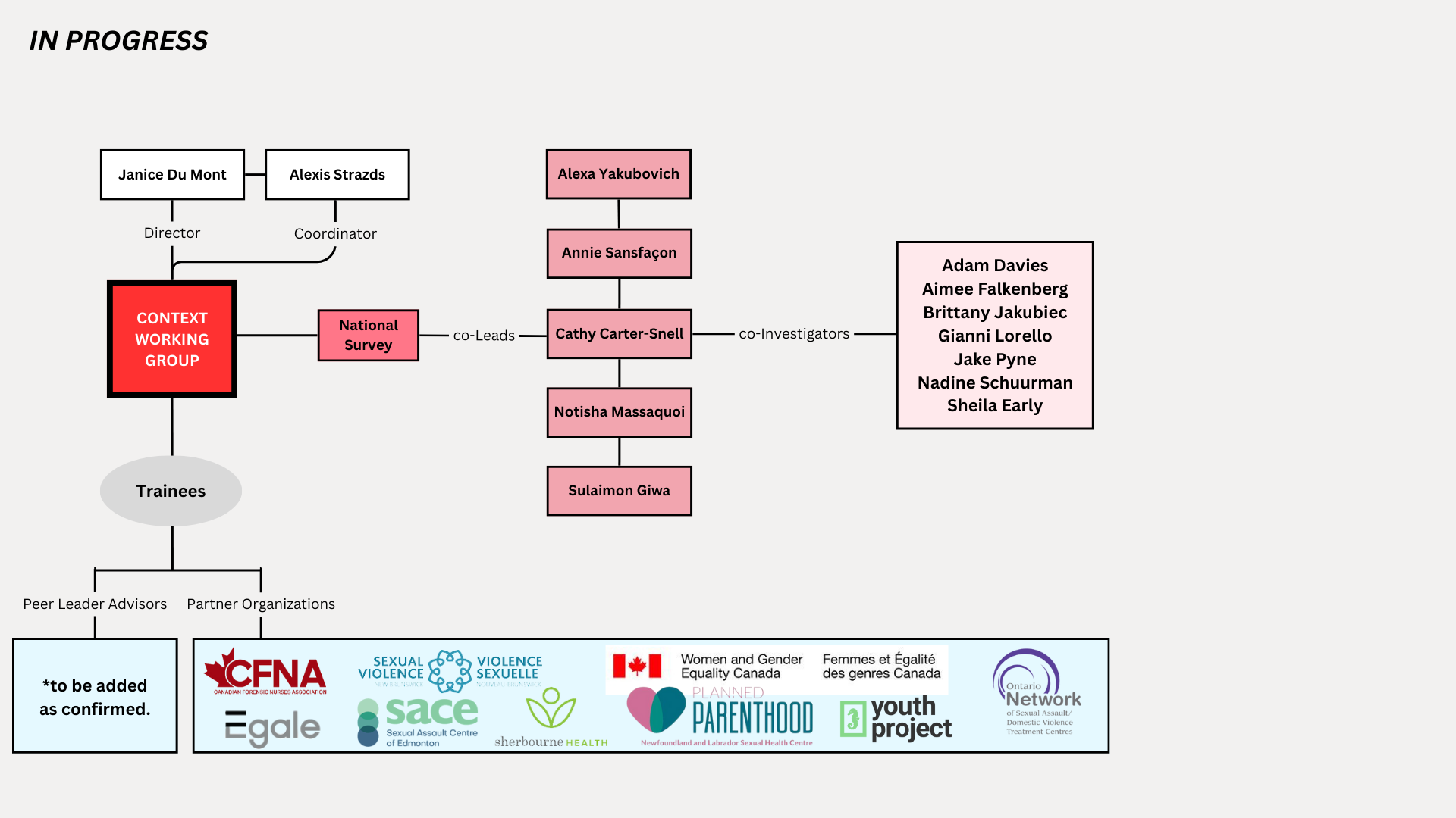 The Context Working Group will develop the first Canadian, population-based survey (trans-LINK Canada Network Survey) focused specifically on sexual assault/intimate partner violence against TGD persons to fill research gaps on its magnitude, severity, risk and protective factors, consequences, and associated help seeking. These data are critical to the development of evidence-informed gender-based violence interventions and a coherent system-wide response.